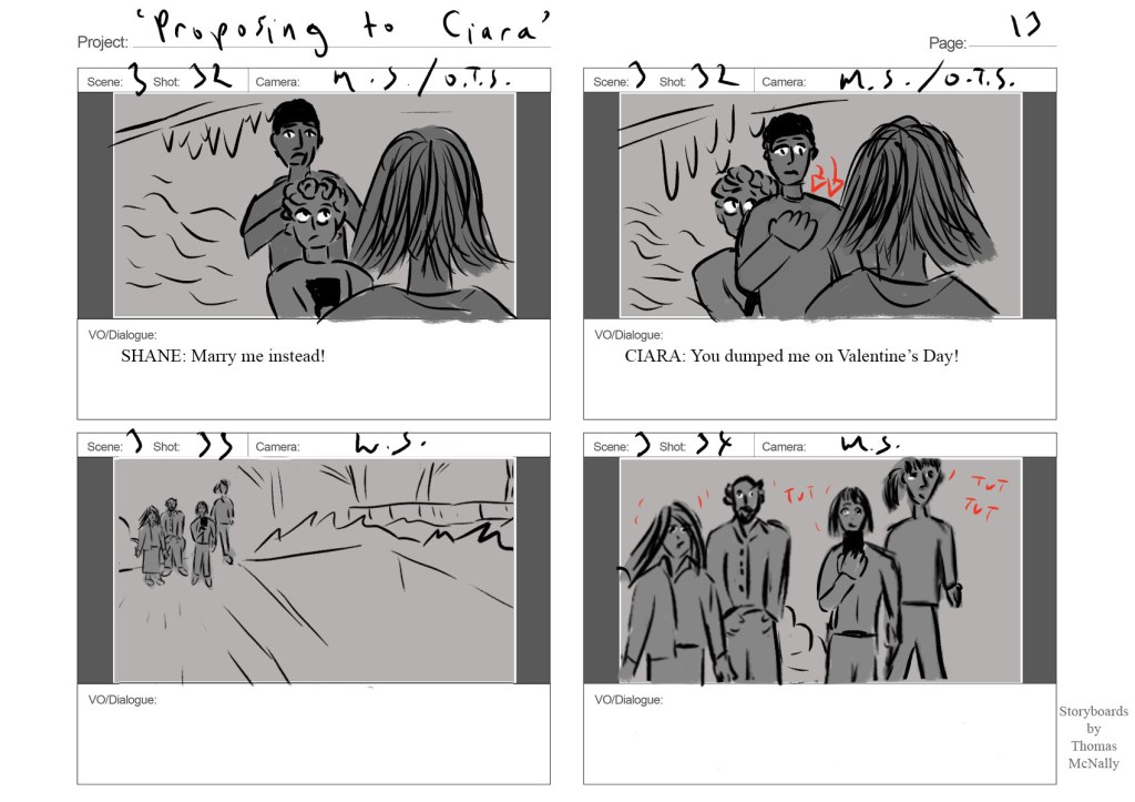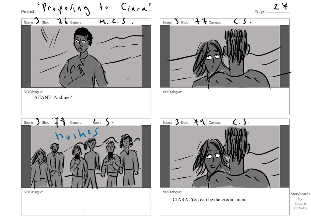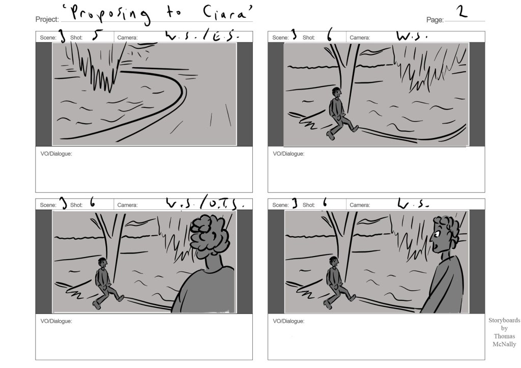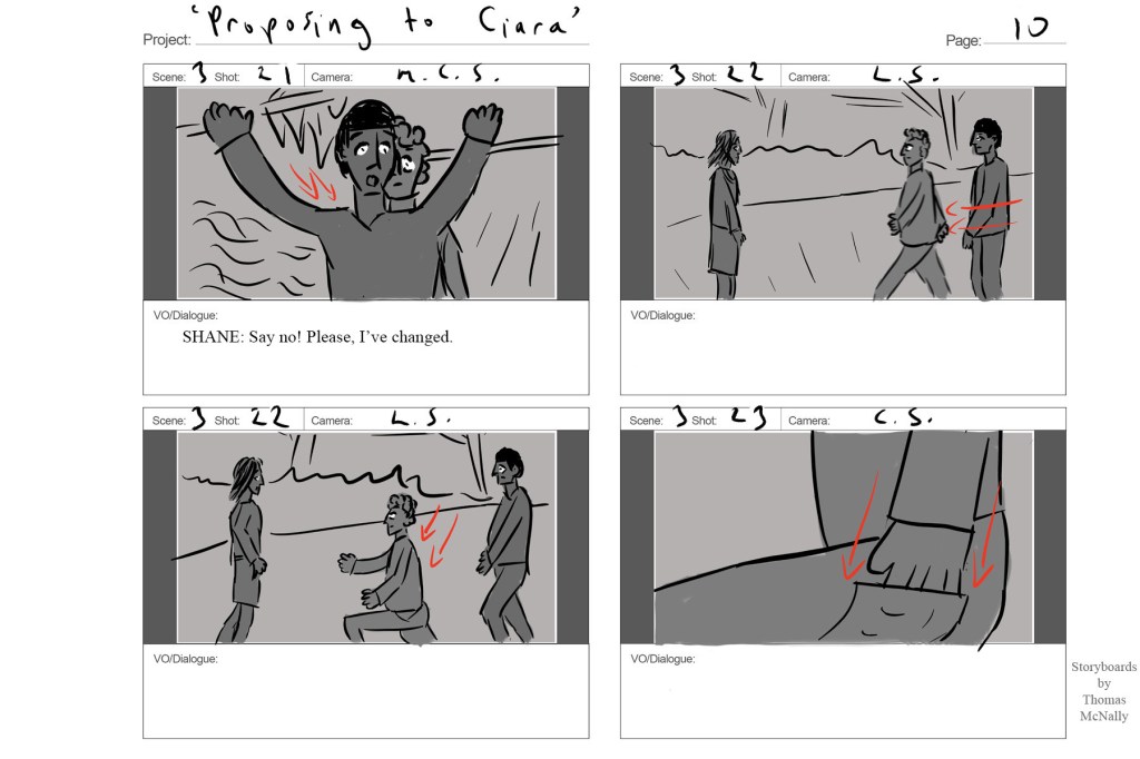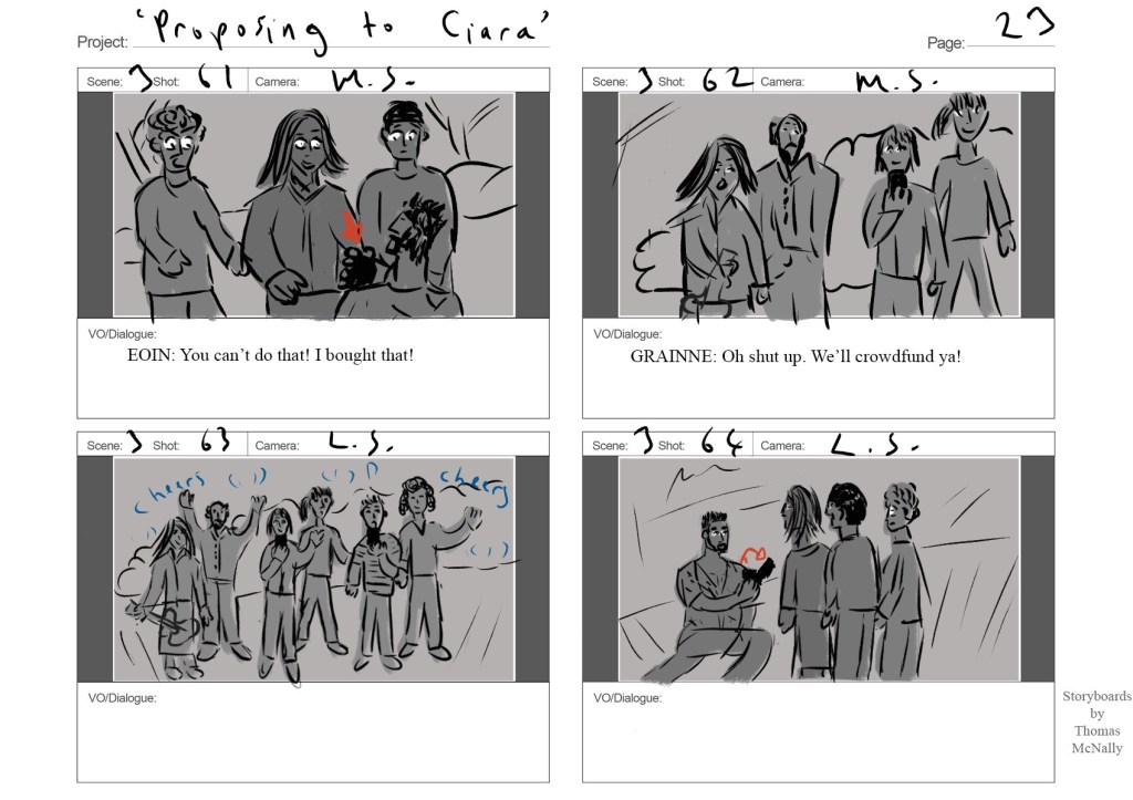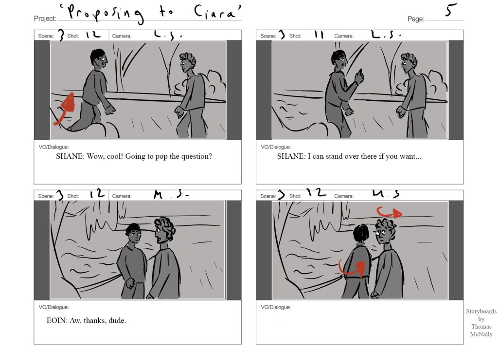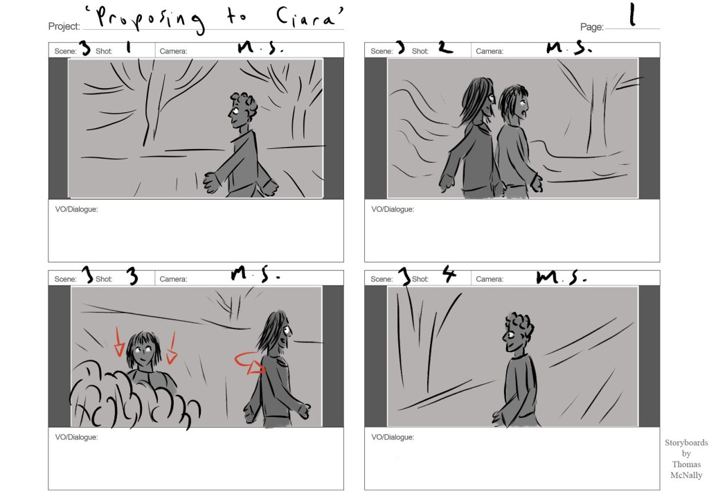 Storyboards for Tara Norris’ ‘Proposing to Ciara’ (live action short film):
