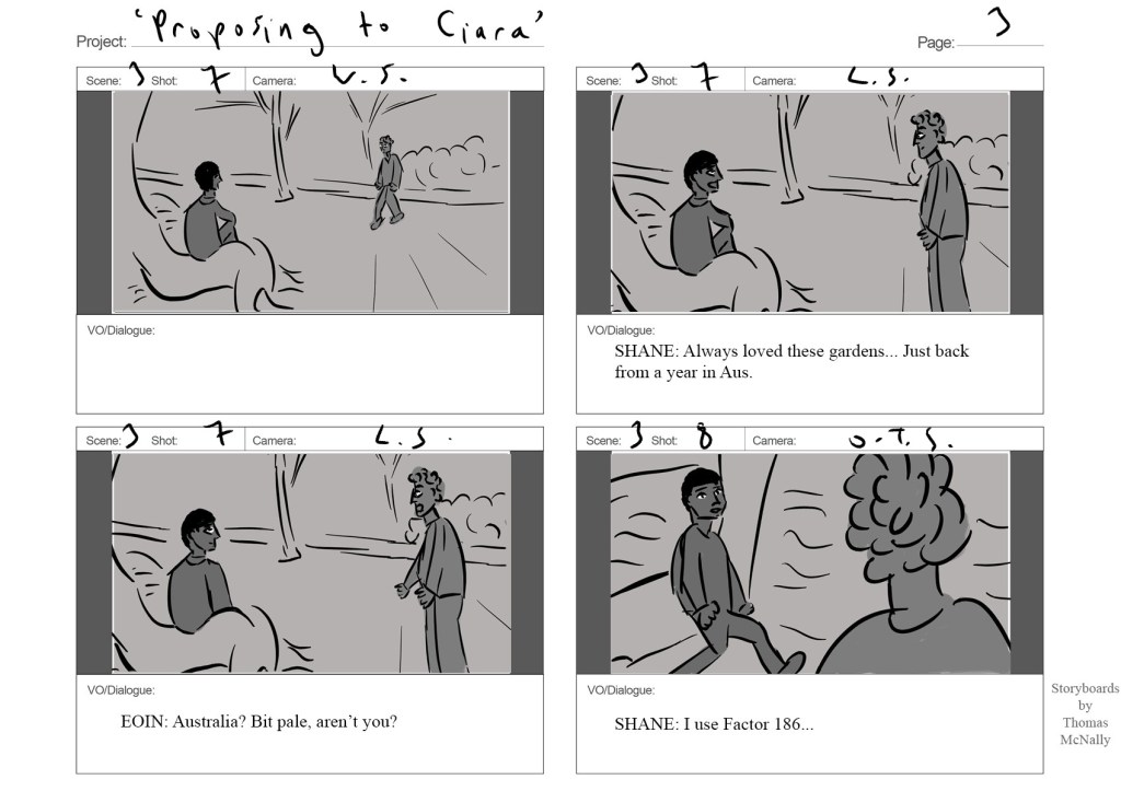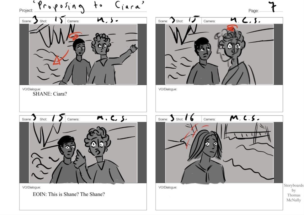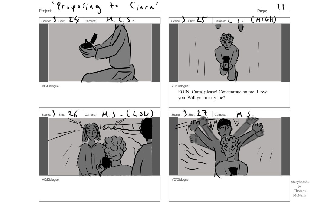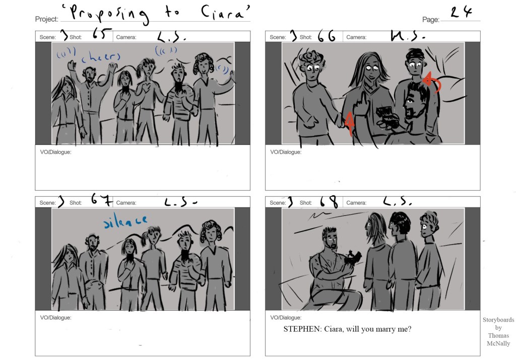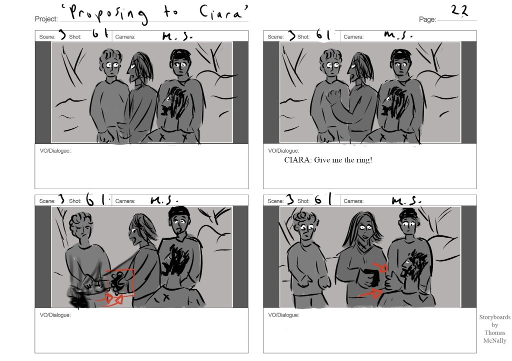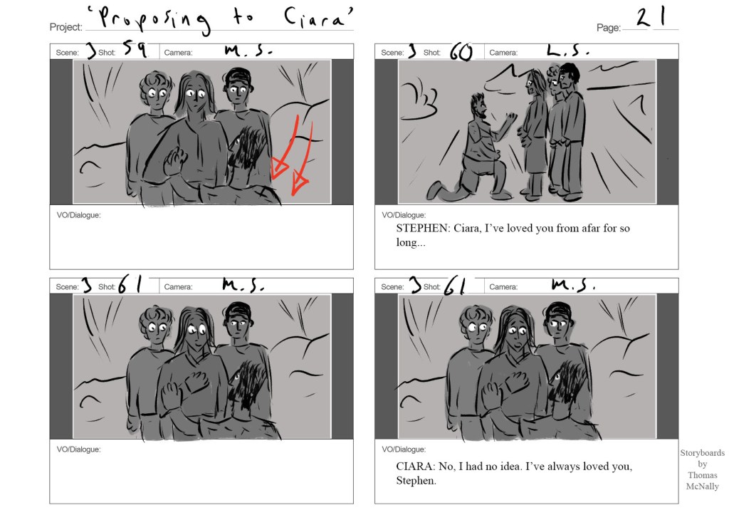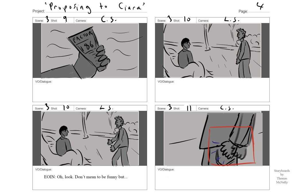Storyboards for Tara Norris’ ‘Proposing to Ciara’ (live action short film):