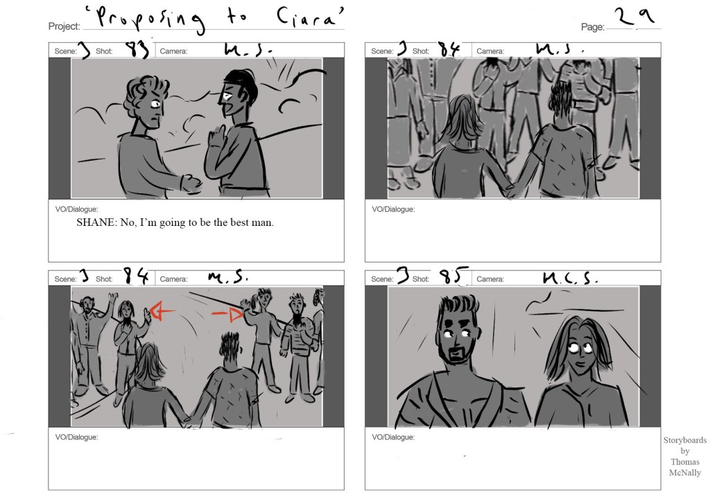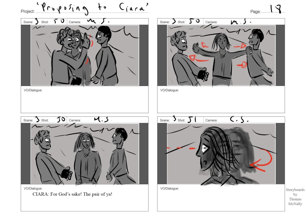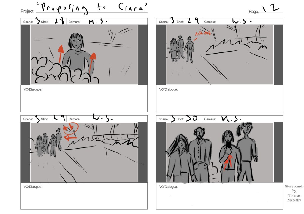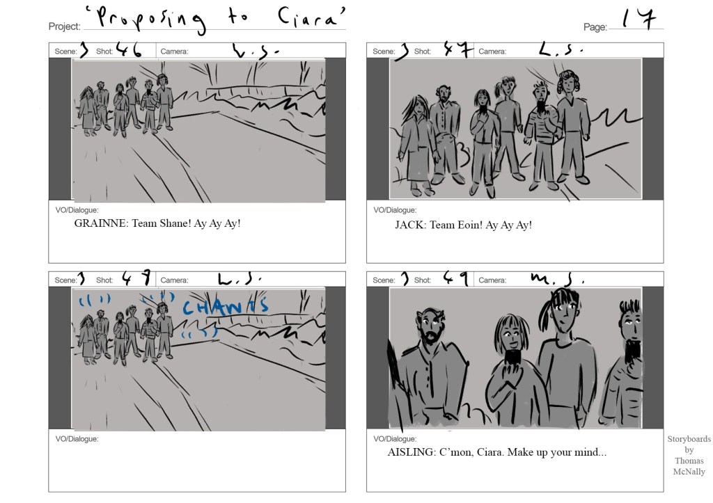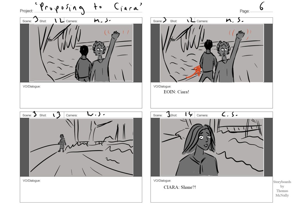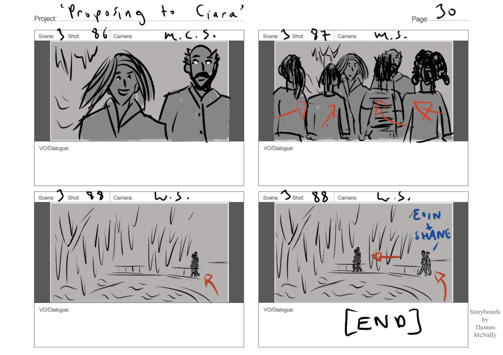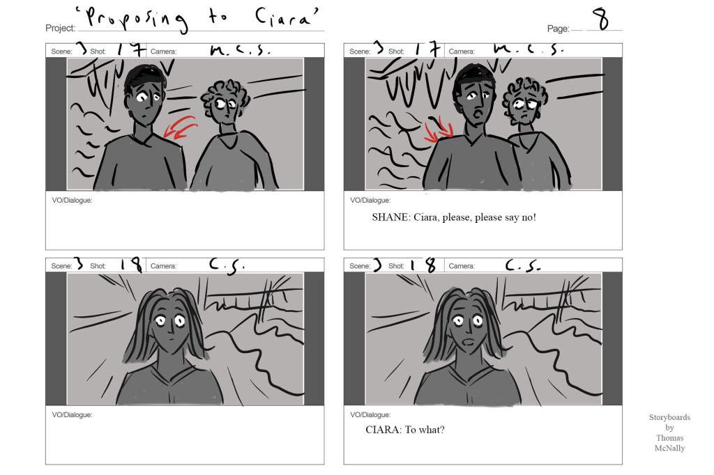 Storyboards for Tara Norris’ ‘Proposing to Ciara’ (live action short film):