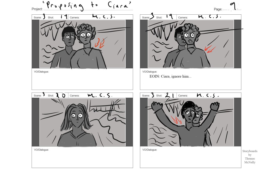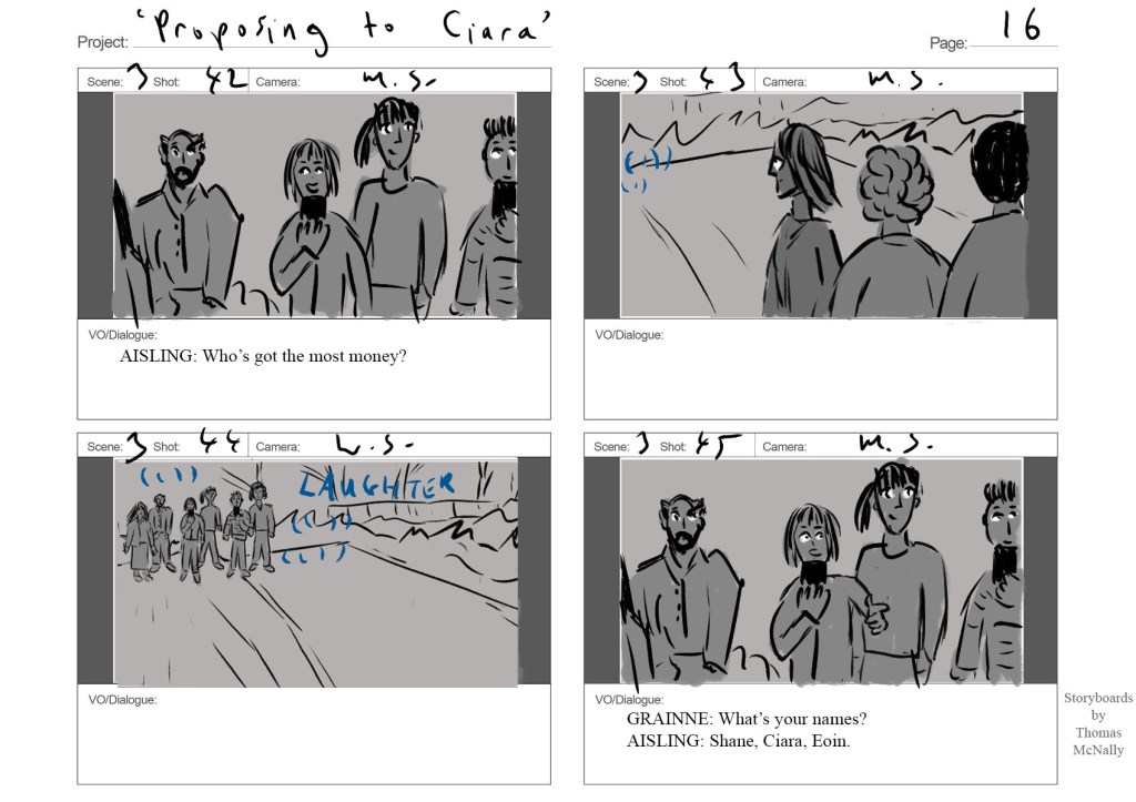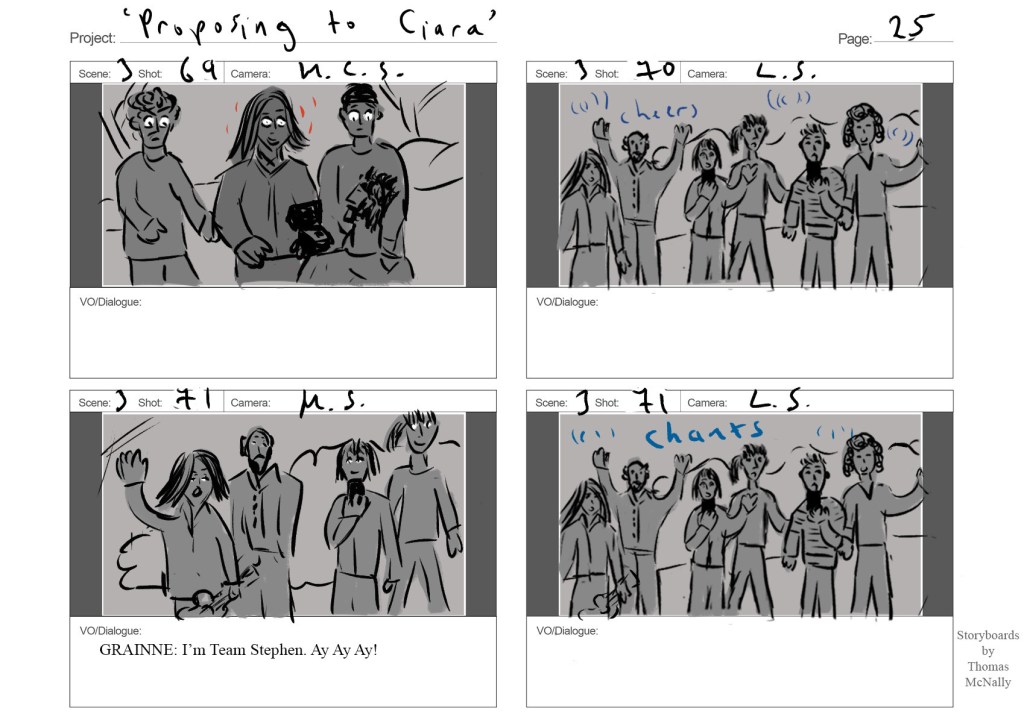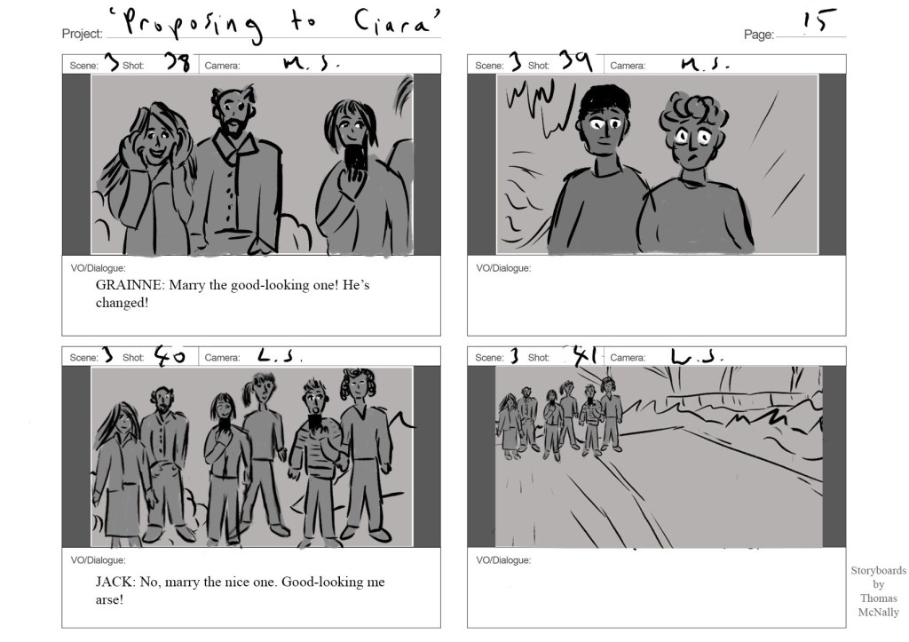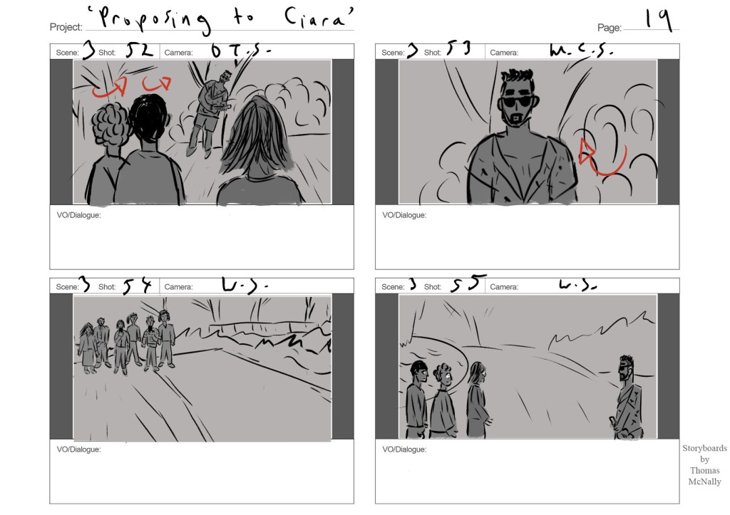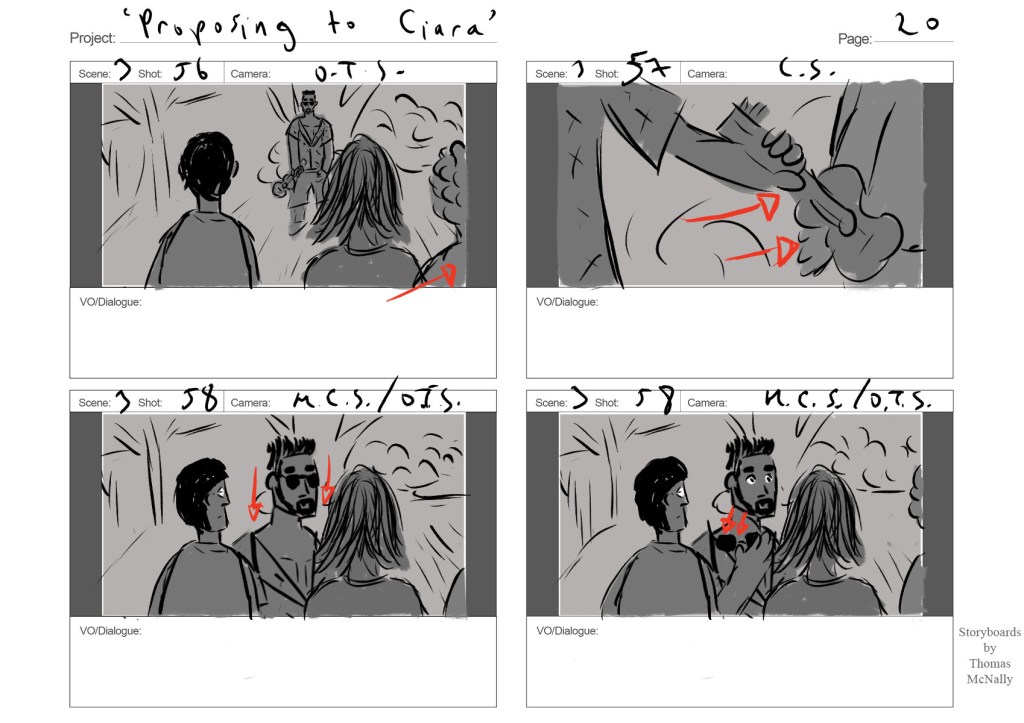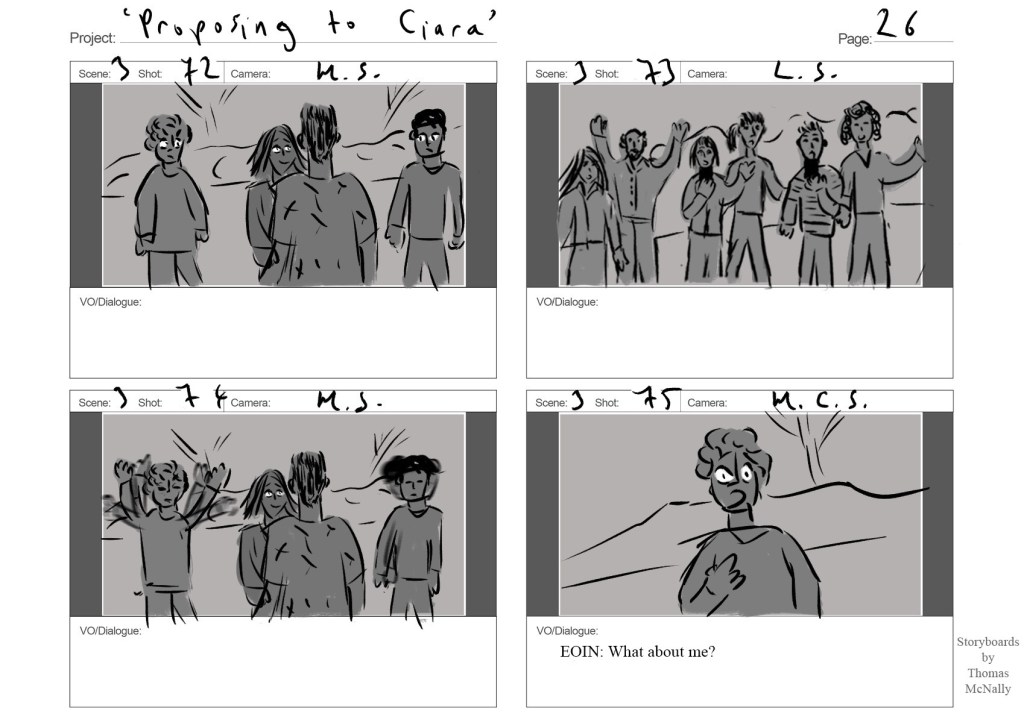 Storyboards for Tara Norris’ ‘Proposing to Ciara’ (live action short film):